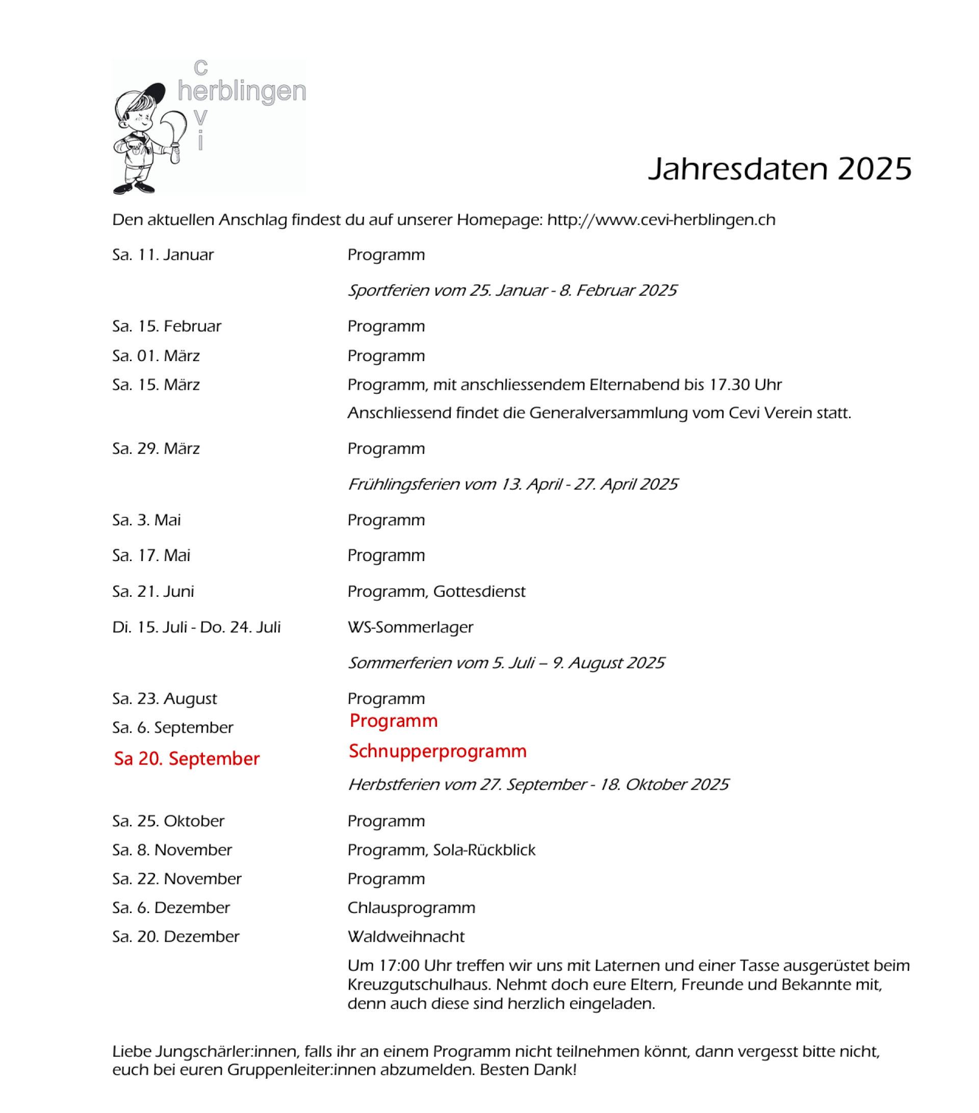 Jahresdaten 2025 Hier finden Sie unsere aktuellen Jahresdaten. Zücken Sie Ihre Agenda und schreiben Sie unsere Daten ein. Jahresdaten 2025